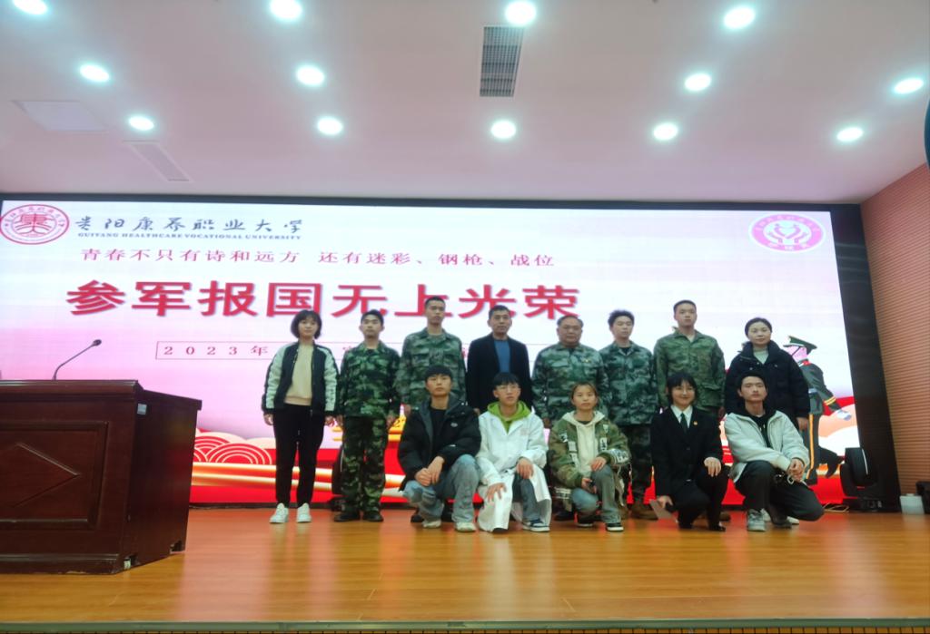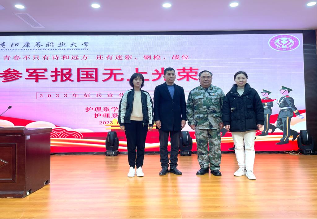为贯彻落实教育部、中央军委国防动员部、贵州省征兵工作办公室等相关文件精神,为帮助老员工了解掌握应征入伍相关政策和流程,鼓励护理系员工积极应征入伍献身国防事业,护理系邀请到退役军人事务局政委陈晓义、最美退役军人王明礼同志,于2023年3月27日下午5:30分在图书馆一楼学术报告厅组织2021级、2022级男同学进行征兵宣传讲座。每个人都会有一个强军梦,都想穿上真正的军装,新时代青年应肩负起民族复兴的责任。
